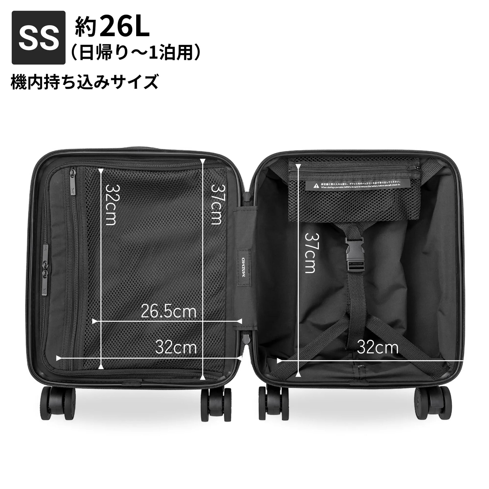 - ※SS・Sサイズは国際線及び100席以上の国内線航空機内に持ち込み可能なサイズです。※100席以下の小型機は航空会社により持ち込み規定が異なります。事前にご利用の航空会社規定をお確かめください。