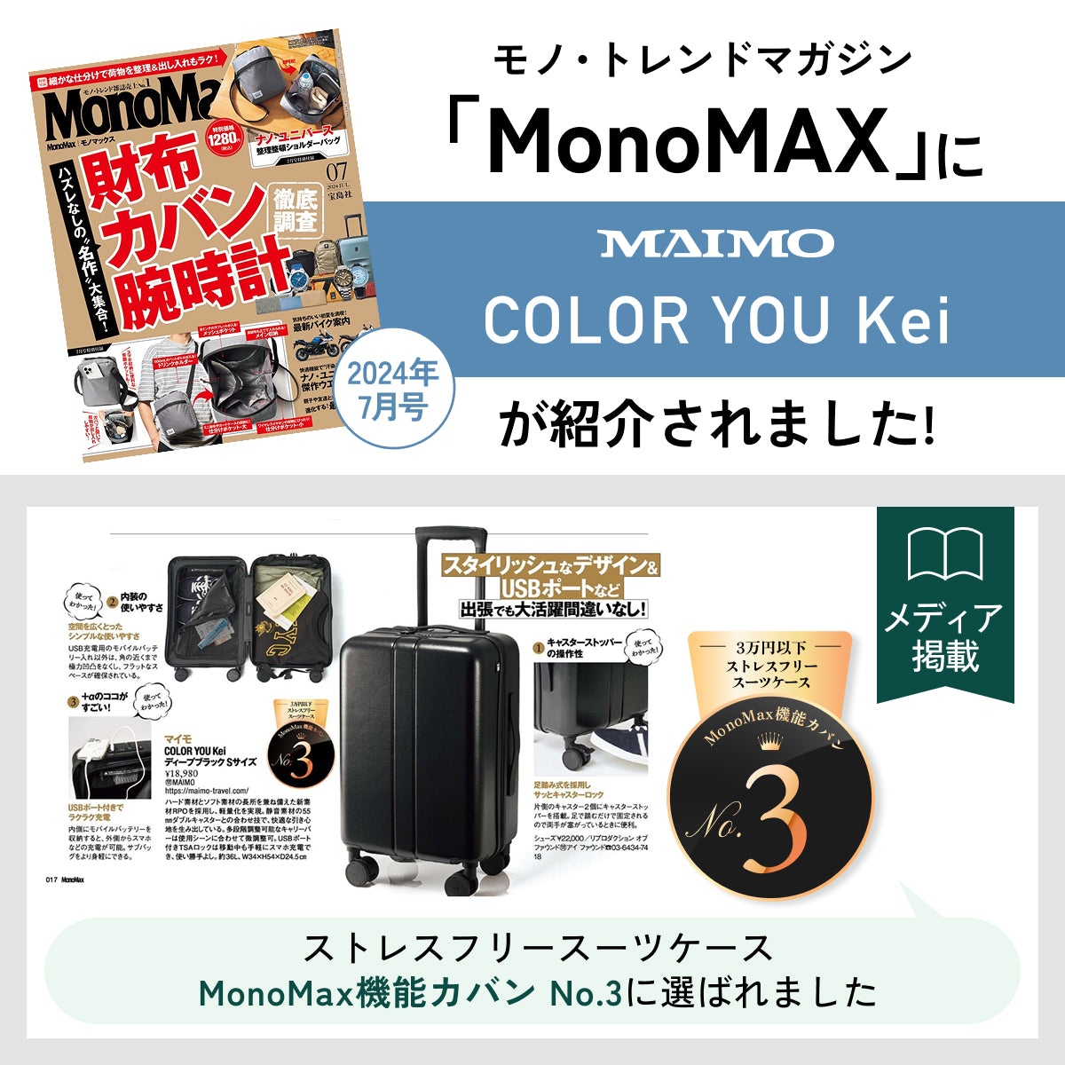 ■機内持ち込みサイズの規定は、各航空会社や航空機の座席数により異なる場合がございます。ご利用の航空会社の規定を事前にご確認ください。
