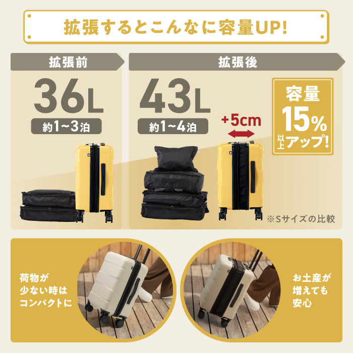 5cm拡張 / ファスナータイプ/内装取り外し機能(ウォッシャブル)/抗菌・消臭・防カビ仕様(内装布)/TSA ロック(最新モデル 008)/1cm単位調節キャリバー/55mm 直径静音タイヤ/